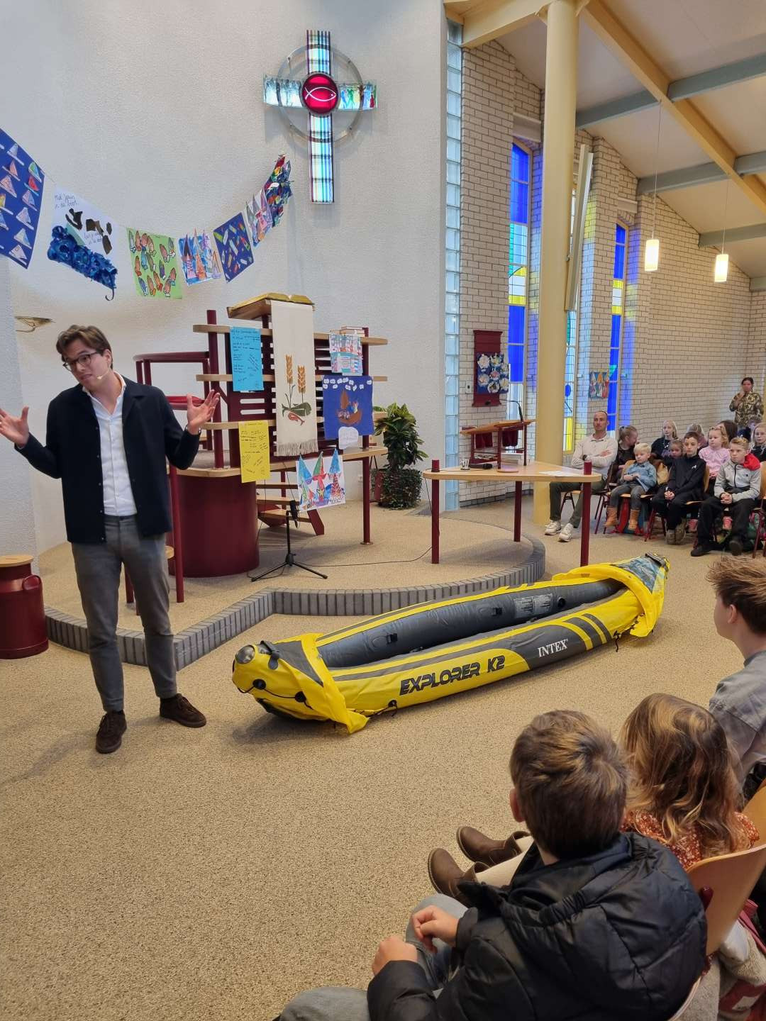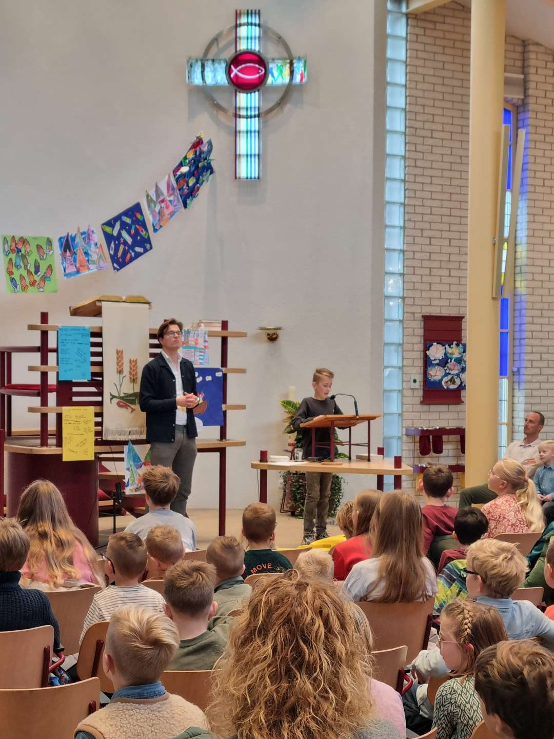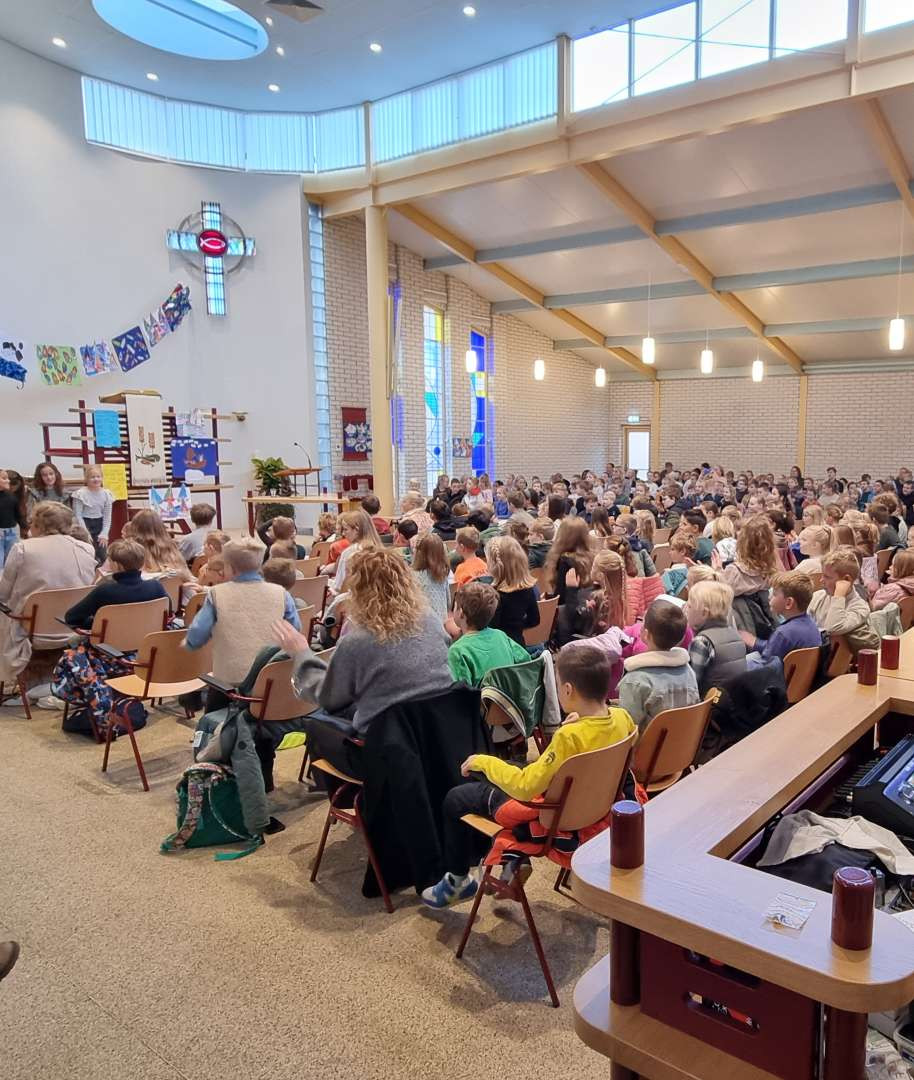 In de Hoeksche Waard wordt op enkele scholen nog waarde gehecht aan deze traditie. De Bouwsteen heeft i.s.m. de plaatselijke kerken een viering in een van de drie kerken. Dit jaar was dat de Ichthuskerk aan de Voorstraat. Een viering met veel liedjes die op school waren geoefend en nu ten gehore werden gebracht met een begeleidende band. Dominee William de Hek vertelde het verhaal rond het thema 'Kom aan boord' en er was een collecte voor Mercy Ships, de varende ziekenhuis schepen waar juf Marlies vorig jaar een half jaar op heeft meegevaren. Ook hadden de kinderen dankpunten doorgegeven waar ze dankbaar voor zijn of juist punten waar ze zich zorgen om maakten. Daar werd voor gebeden.