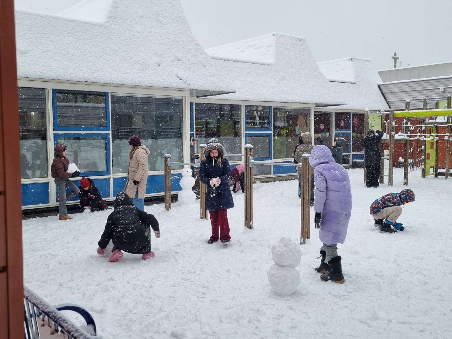 De laatste dagen van de kerstvakantie waren voor kinderen natuurlijk al heerlijk om van de vele sneeuw te genieten, maar wat is er nou leuker om dat de eerste schooldag van het nieuwe kalenderjaar nog eens dunnetjes over te doen?